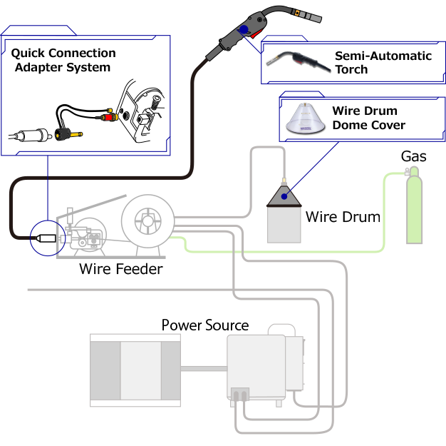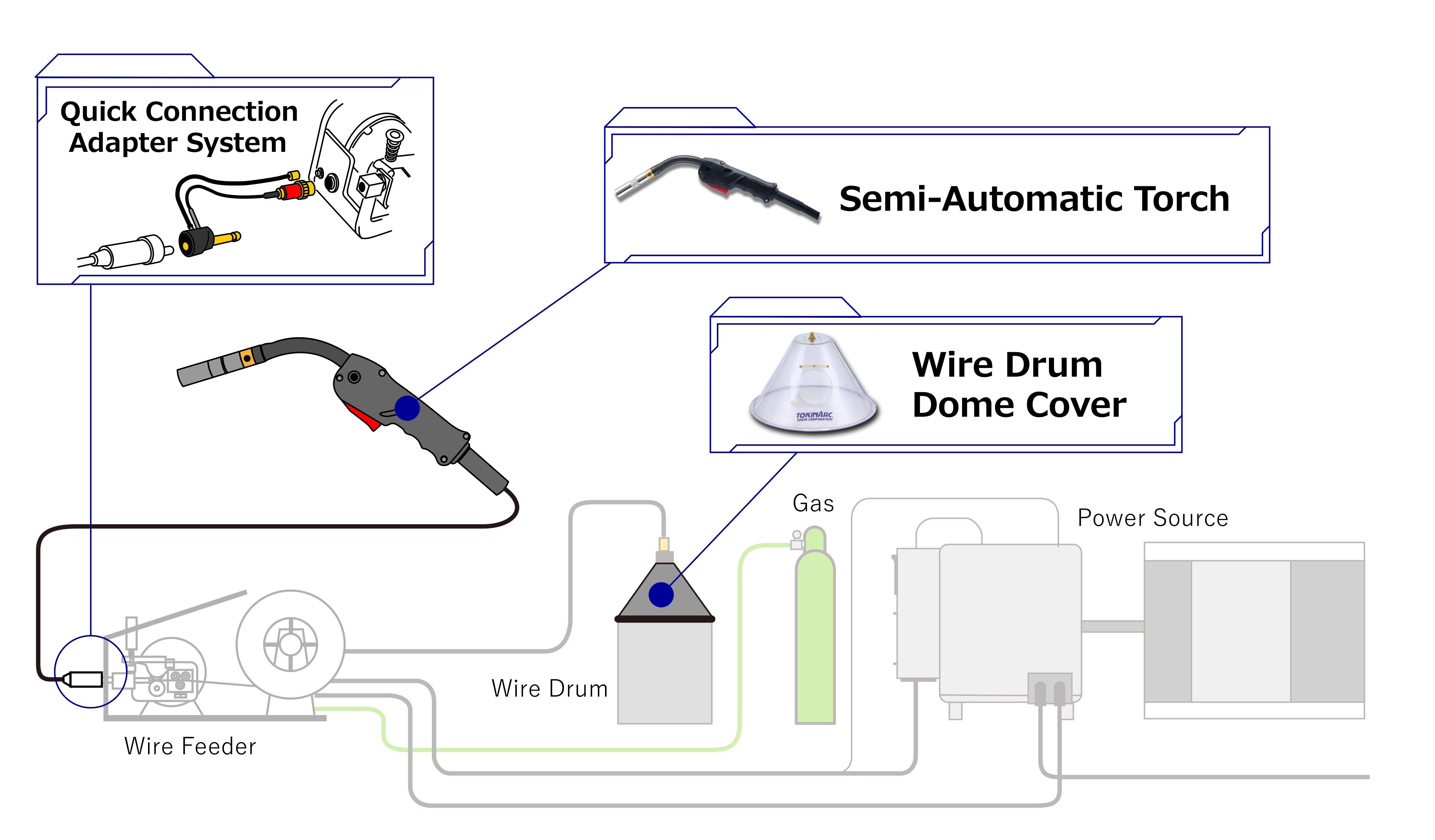 manufactures semi-automatic torches, wire drum dome covers, and quick connection adapters.