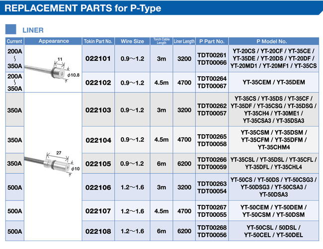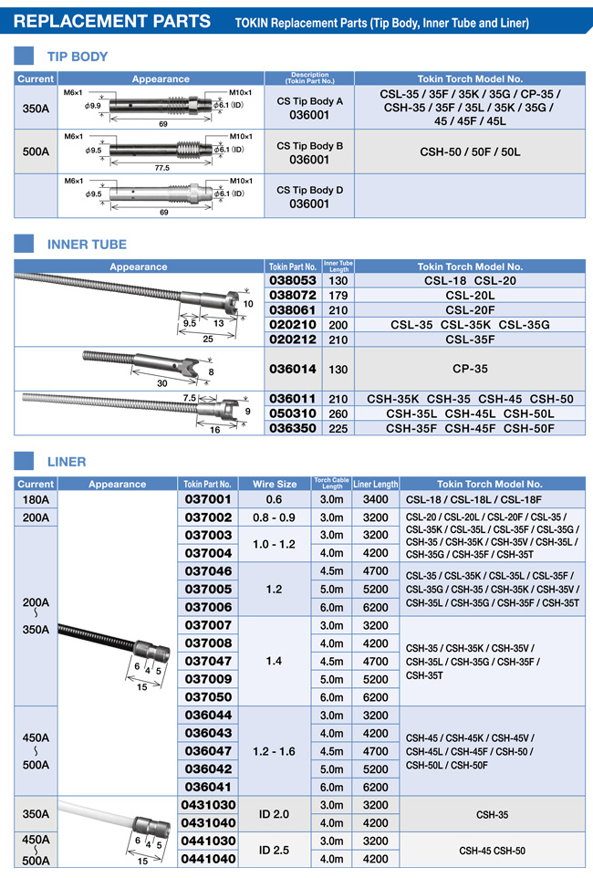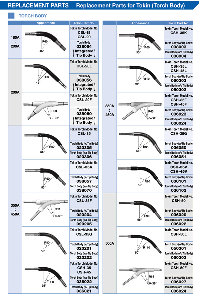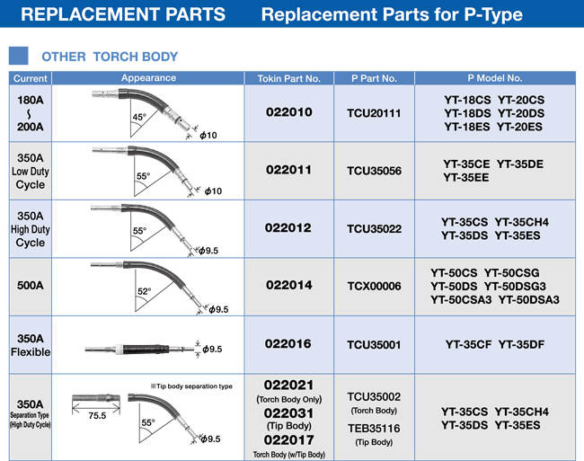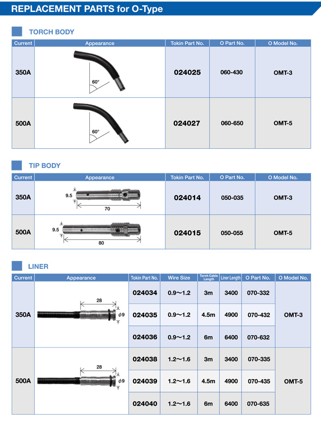 Replacement Parts for O-Type (TORCH BODY,TIP BODY,LINER)