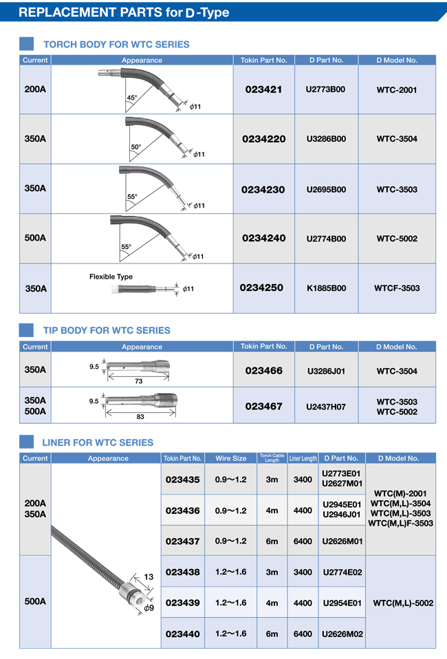 TORCH BODY,TIP BODY,LINER FOR WTC SERIES/WT SERIES